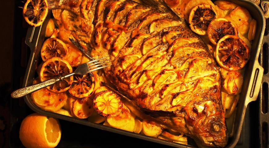 После всех приготовлений остается только положить рыбу в духовку, установить нужную температуру и ждать, когда восхитительный аромат распространится по всей кухне. Время приготовления зависит от сорта рыбы и величины кусочков. У готовой рыбы мясо легко отделяется от хребта.