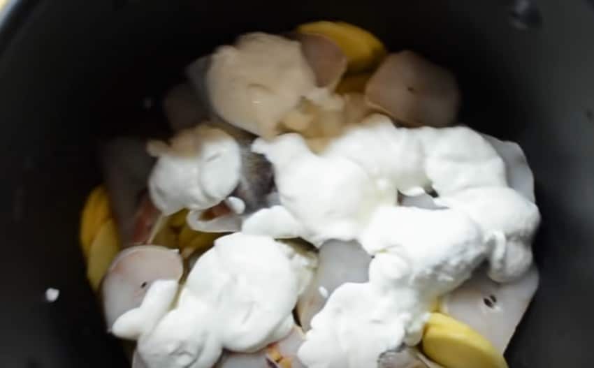 Треска, тушеная в мультиварке с картошкой и сметаной