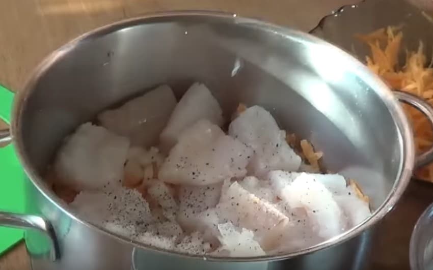 Классический рецепт тушеной рыбы с морковью и луком без обжаривания