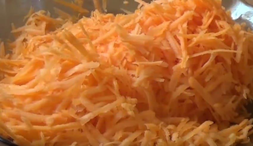Морковь мелко натираем, если используем еще и другие овощи — нарезаем их.