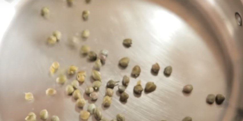 5. Пока тушка в духовке, приготовьте к ней соус. На сковороду насыпьте каперсы и обжаривайте их 30 минут.