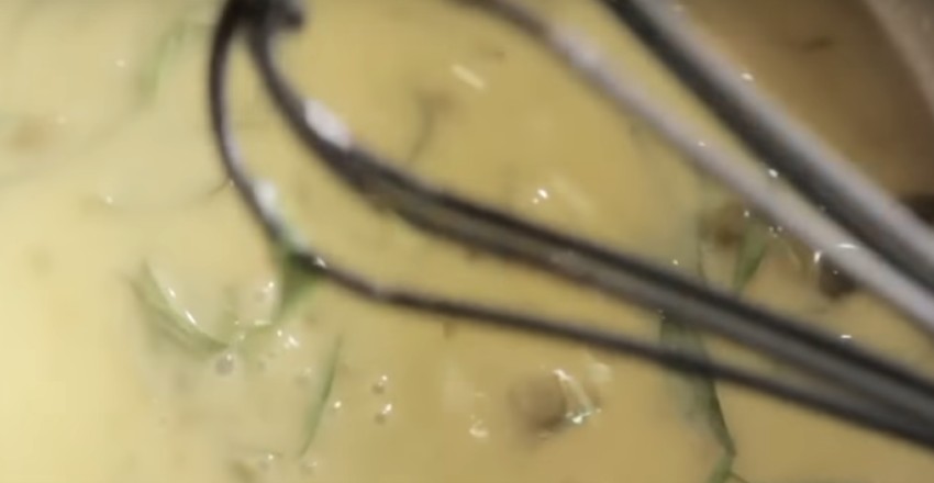 7. Добавьте сливочное масло и перемешайте содержимое до однородности. Добавьте тархун и сок половины лимона. Посолите, перемешайте и снимите соус с огня.