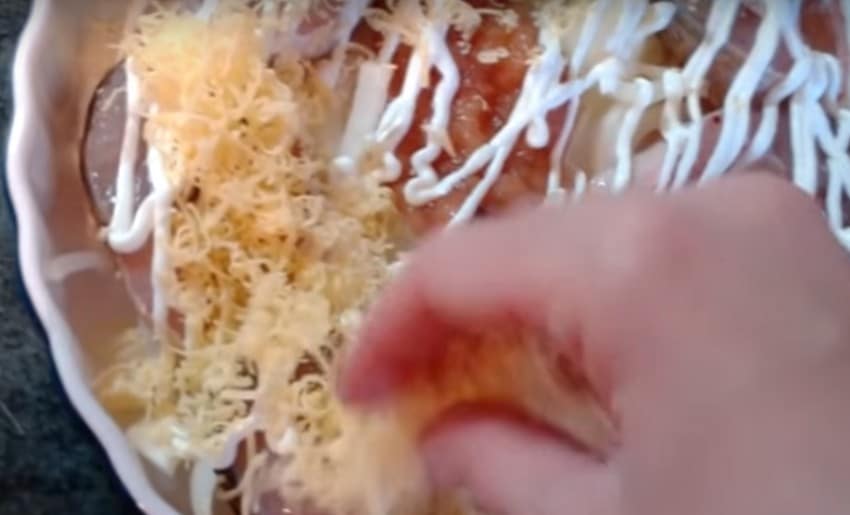 16. Немного заворачиваем и посыпаем натёртым на крупной тёрке сыром.