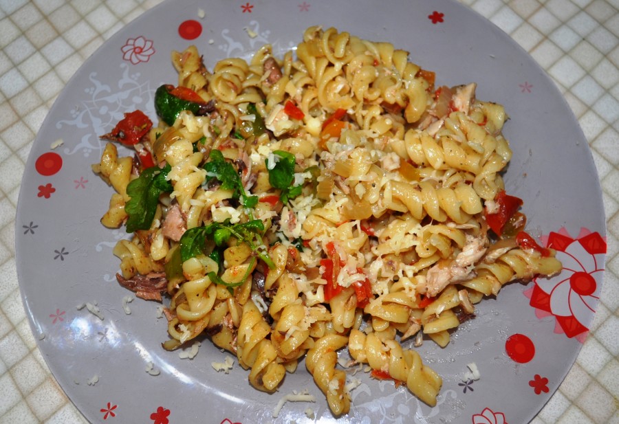 Консервированный тунец обыкновенный, производства разных наших заводов от Калининграда до Владивостока, банки 200-300 г стоят от 60 до 120 рублей. Моя покупка за 90 рублей сдобрила пасту на две персоны. Два непонятных микрокуска и бульон отдали собаке. Я рыбные консервы в принципе не покупаю, теперь и консервированный «тунец» освоен и занесен в список маленьких достижений натурального хозяйства.