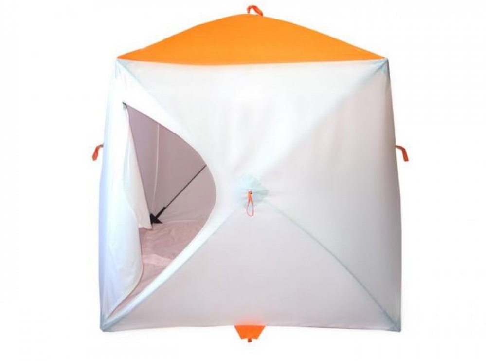 Лотос Куб 3 Компакт Термо – за модный куб придется заплатить 23 000 рублей. Он имеет полуавтоматическую сборку и основание из стеклокомпозитной арматуры. Тент состоит из трех слоев: верхний из полиэстера (Оксфорд), затем нетканый утеплитель и снова синтетика. Продумана система гидроизоляции дна. Есть удобные кармашки и держатели для размещения вещей.