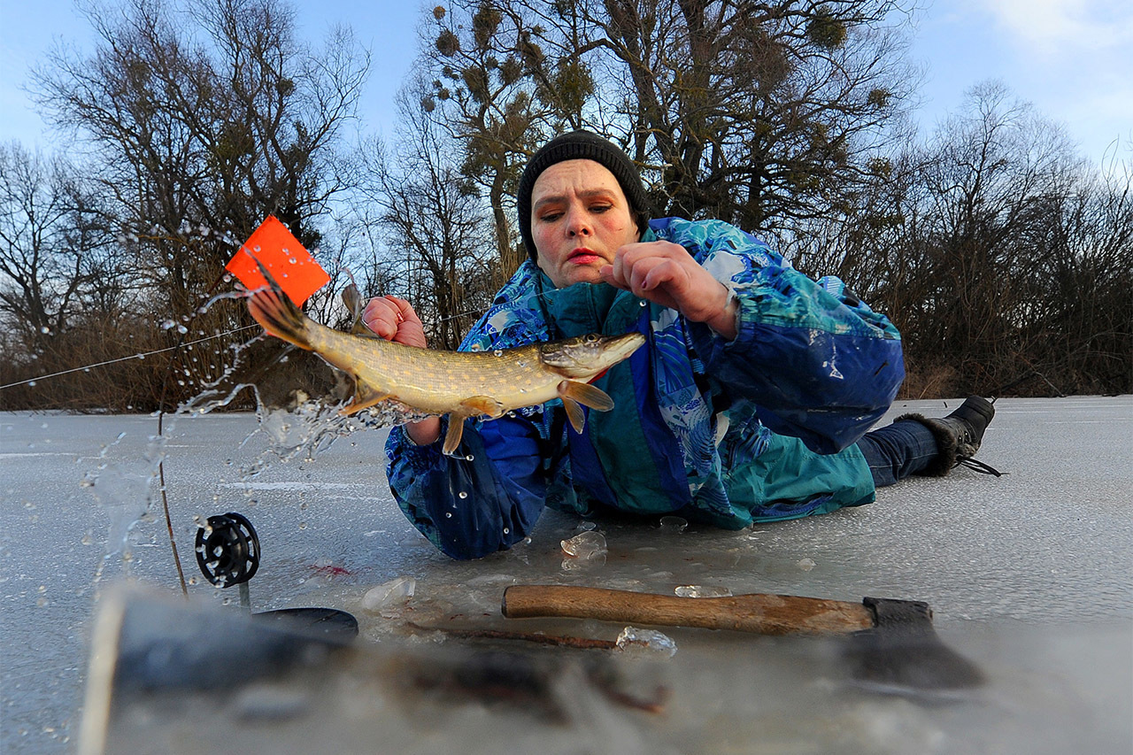 На глаз прочность льда можно определить по его цвету. Крепкий лед либо полностью прозрачен, либо имеет синеватый или зеленоватый оттенок. А вот желтоватый или матово-белый лед крайне ненадежен — выходить на него очень опасно. Передвигаясь по замерзшему водоему, лучше в любом случае простукивать лед впереди себя пешней или палкой — если место удара заполняется водой, то рыбалку нужно прекращать как можно скорее.