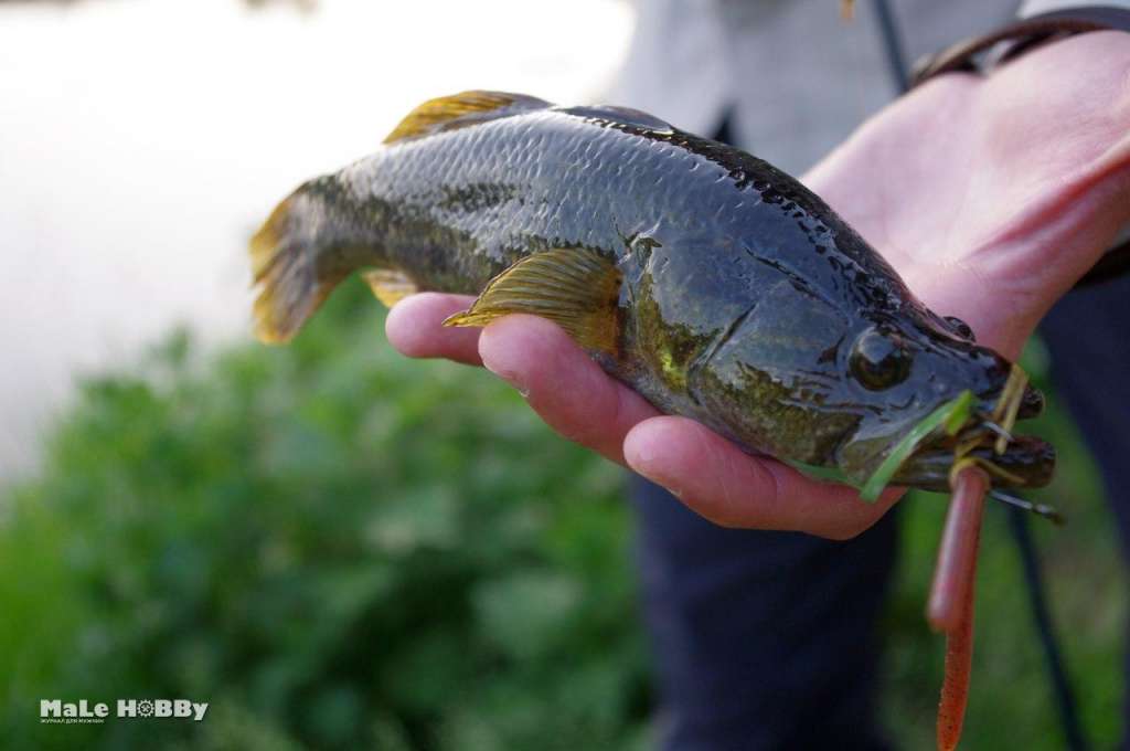 - На небольших реках, прудах срабатывает и обычная поплавочная удочка, оснащенная живцом. Идти нужно вдоль береговой линии вниз по течению, пробуя выполнять проводку вблизи коряг, омутов, в окнах среди водорослей.