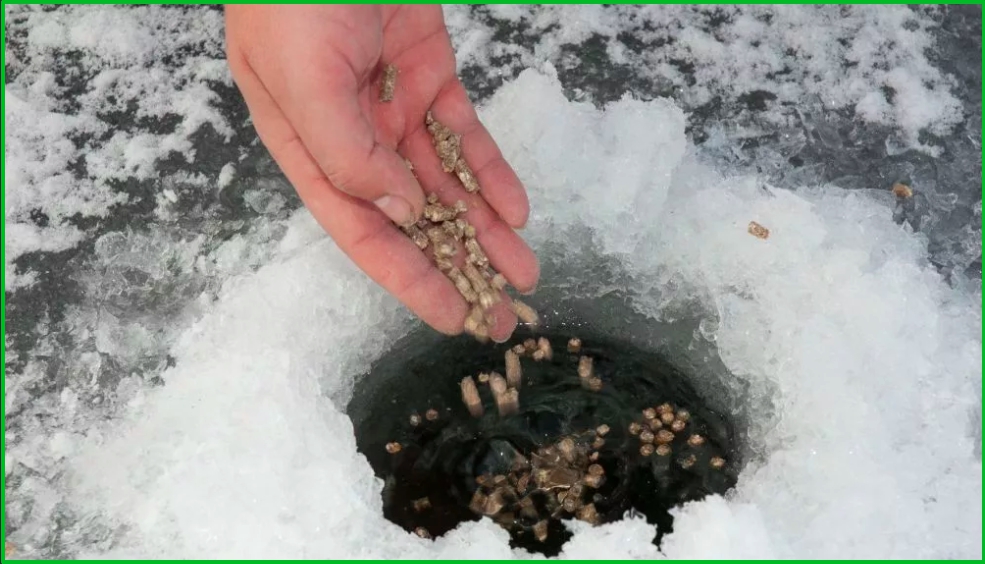 Для привлечения хищника в зону лова, в лунку можно кинуть:
