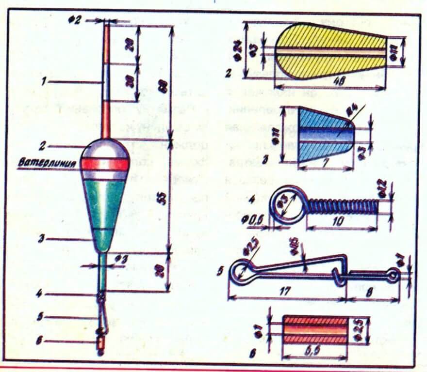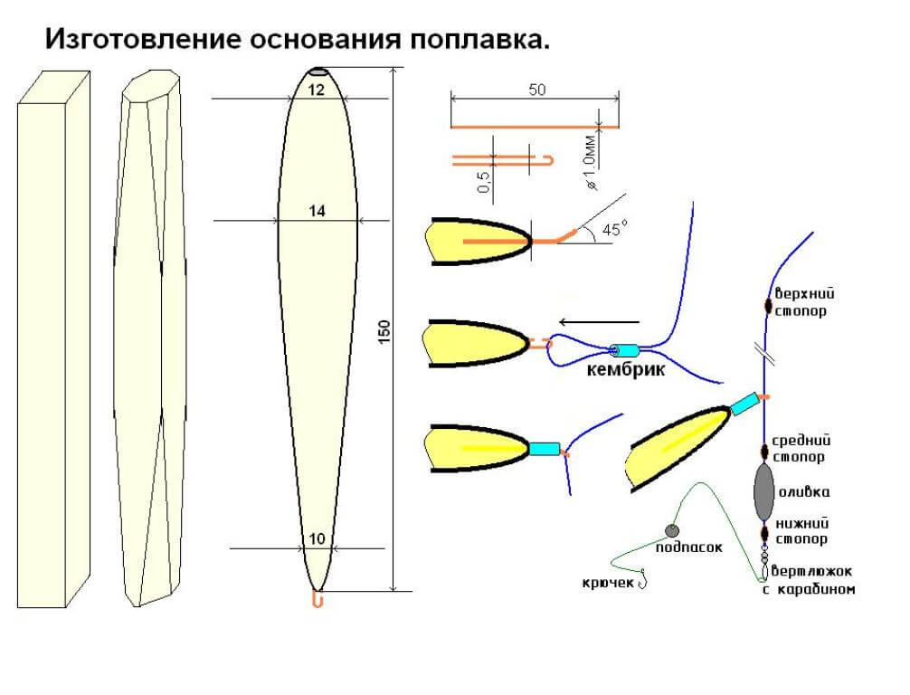 Крепежная фурнитура (ниппель, шарнирная конструкция) приобретается готовой либо формируется из проволоки. Завершаются работы окрашиванием поплавка и покрытием слоями лака. После высыхания снасть готова к эксплуатации.