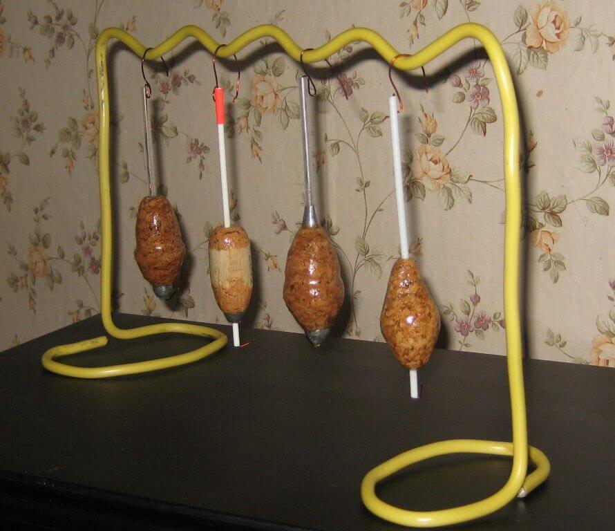 Поплавки для ловли на течении своими руками изготавливаются из сырья с небольшим весом, доступным в обработке, сохраняющим заданную конфигурацию. Простые модели конструируются из пробки либо пенопласта.