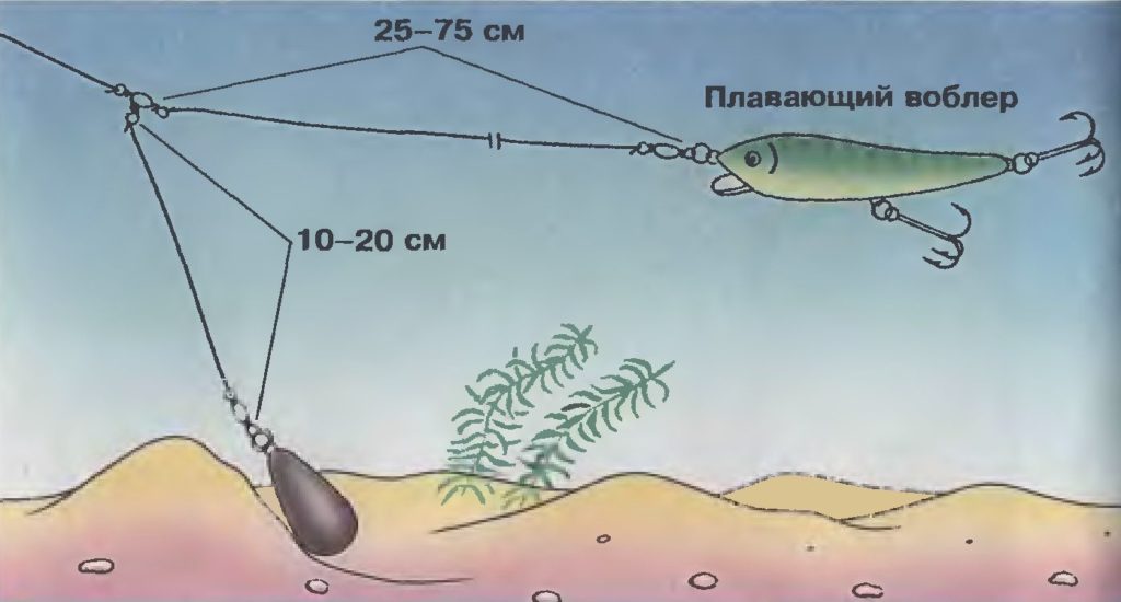 Оснастка для троллинга может представлять собой классический отводной поводок. Вес грузила подбирается в зависимости от глубины места ловли и скорости течения и тролла.