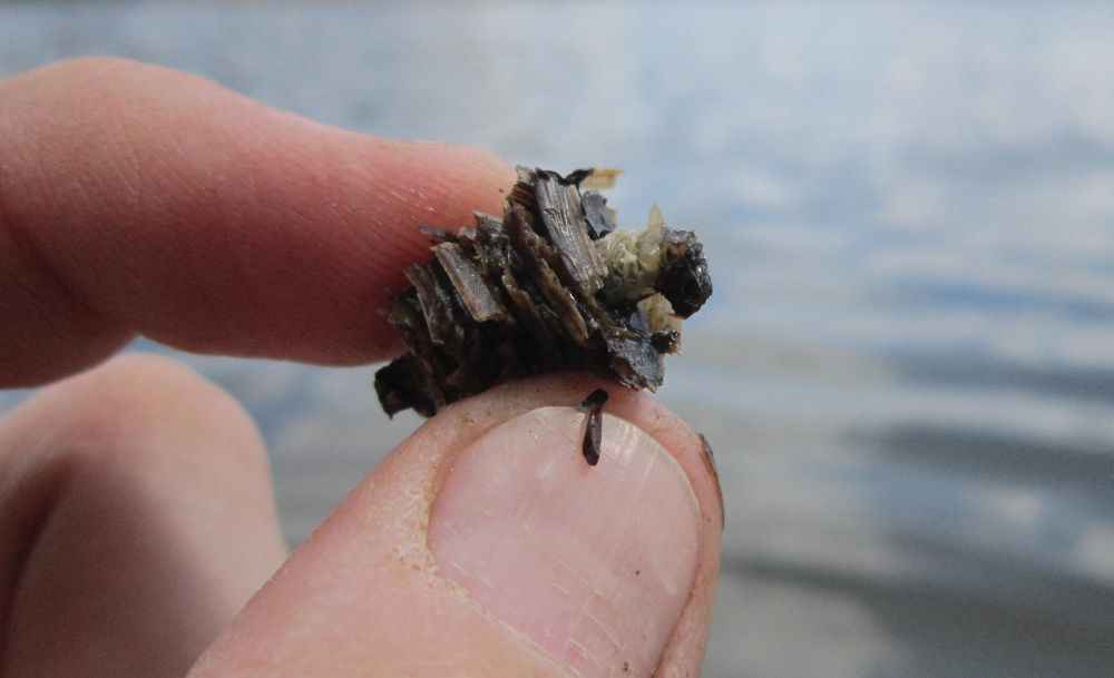 Наилучшими наживками при поплавочной ловле на малых реках весной считаю мотыля, опарыша и ручейника. Последнего легко можно насобирать прямо на месте ловли у реки. К примеру, вот такие его домики-шишечки, как на фото, я нахожу в заполненных водой микро-овражках под ольхами.