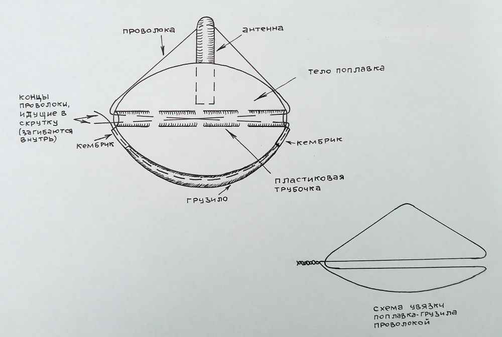Поплавок используется для выполнения двух функций: он сигнализирует о поклёвке и позволяет удерживать крючок на нужной глубине. Его конструкция включает в себя такие элементы: