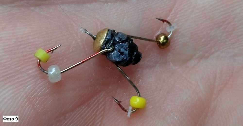 Проводка с «Медузой» выглядит как медленное и плавное раскачивание приманки. На её крючки я надеваю разный по цвету бисер (фото 9)