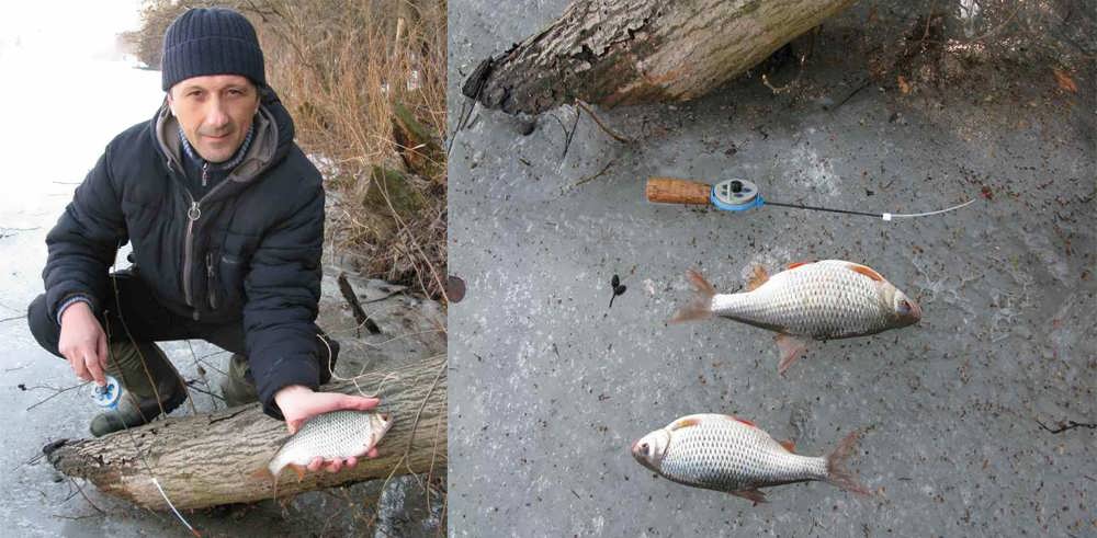 На крупных, полноводных реках эффективнее становится ловля рыбы со льда поплавочными удочками. Если течение воды ровное, то на глубинах 3…5 м можно весь день ждать клева на навозного червя или мотыля. Мелкие блесны, мормышки с подсадкой мотыля, малька приносят часто голавлей, судаков, небольших щук, иногда язей. На мормышку и поплавочные снасти продолжает брать крупный ерш, густера, подлещик.
