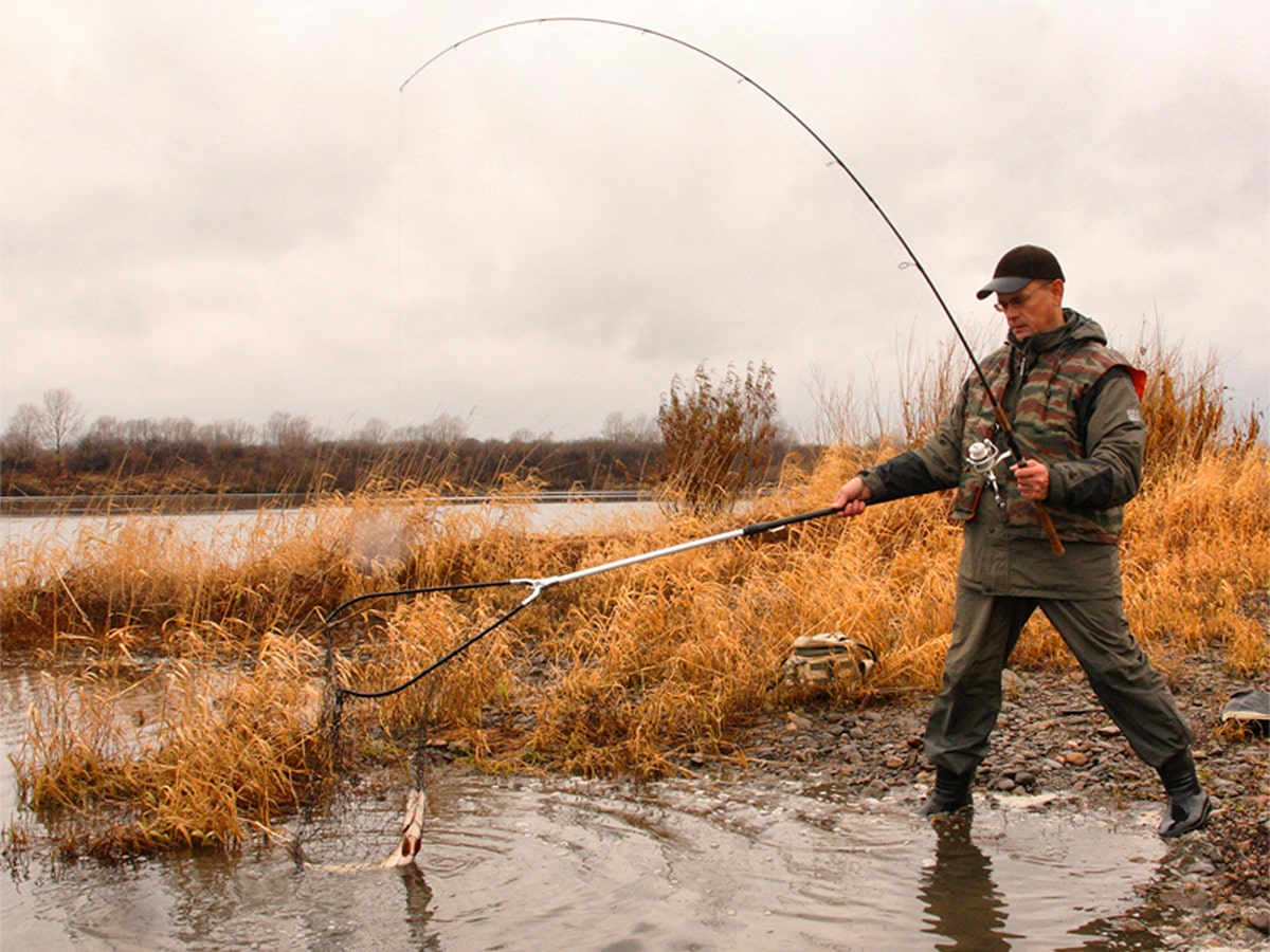 - Размер удилища — 2,5 метра при береговой ловле и 2,2 метра при ловле с лодки.