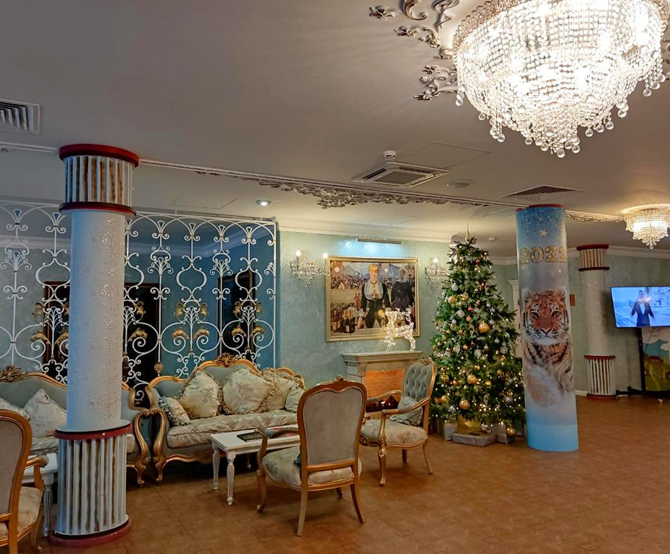 Питание: Работает ресторан Хуторок с русской и европейской кухней, также банкетный зал Янтарный с итальянской, русской, интернациональной и европейской кухней. Есть бар, доставка продуктов, детское и диетические меню.