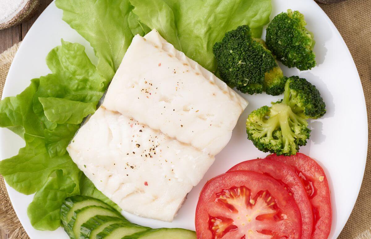 - Ужин: запеченная треска — 250 г и 200 мл обезжиренного кефира.