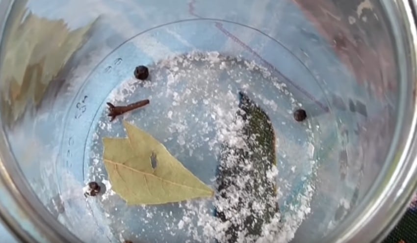В качестве приправ следует использовать лист лавра и перечные горошины, измельченный собственноручно. Можно использовать в умеренном количестве кориандр с гвоздикой.