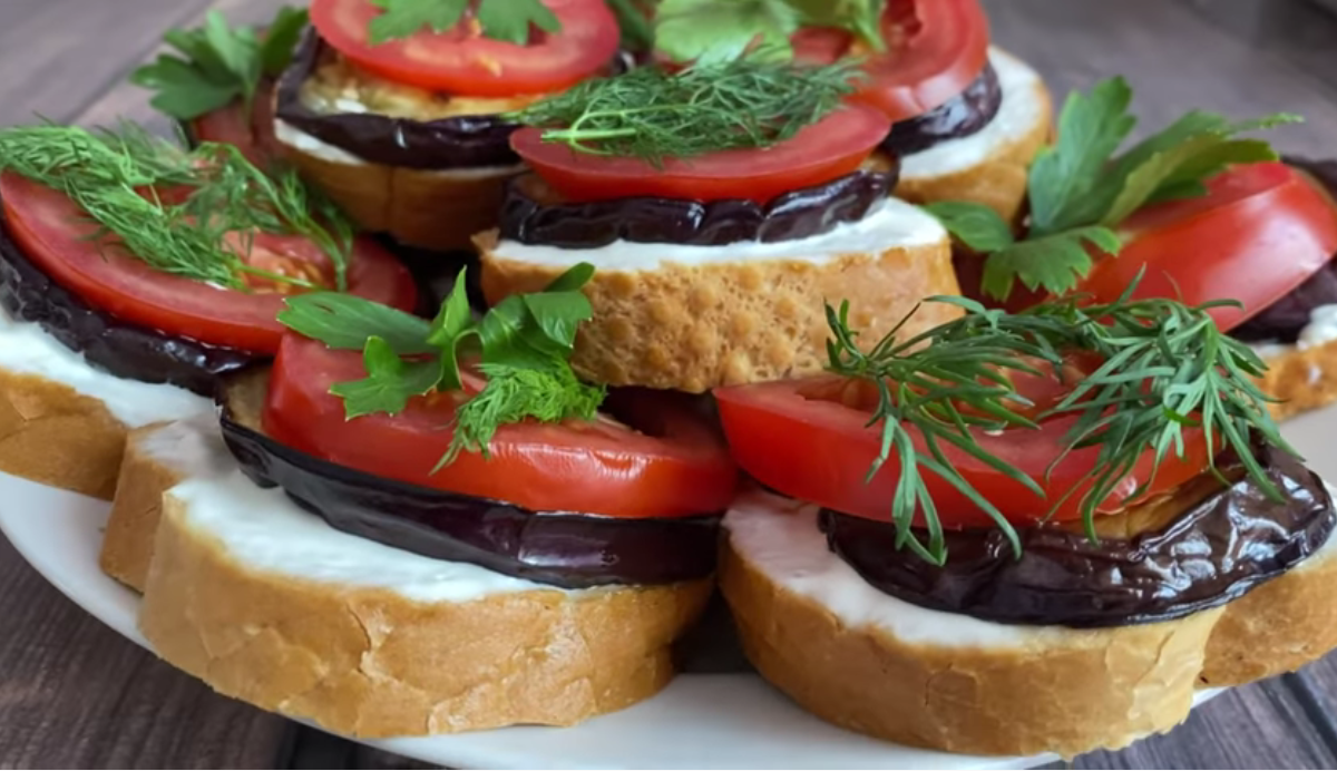 Вегетарианцам понравятся бутерброды с баклажанами и помидорами. Вкус этой закуски забыть очень сложно.