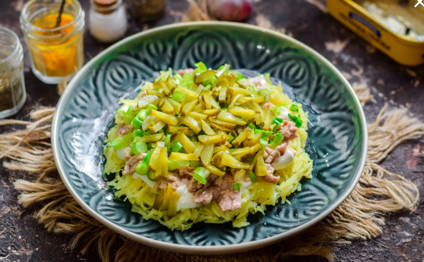 Необычное «Оливье» на Новый год понравится всем. Пикантный вкус и оригинальный состав блюда порадуют как поклонников рыбы, так и сторонников традиционных салатов.