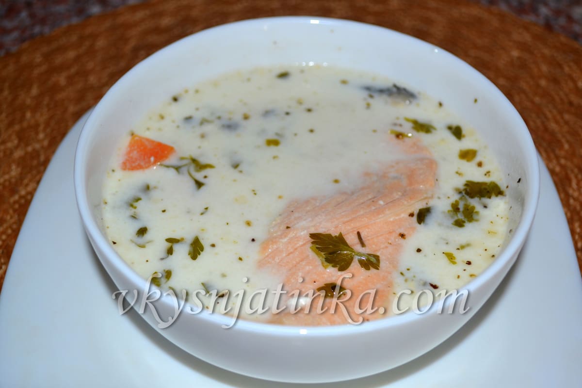 - Норвежский рыбный суп с семгой и сливками по-Бергскому рецепту