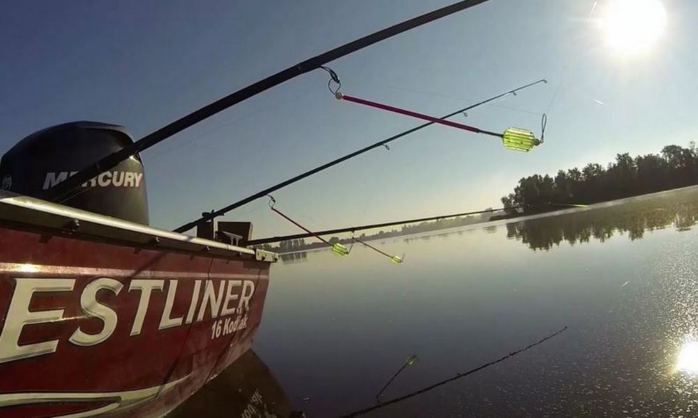 Для того чтобы крючки не спутались, следует опустить толстую леску с прикормкой на дно водоема под углом от лодки и параллельно течению. В этом случае потоки воды будут разравнивать поводки, препятствуя их сматыванию.