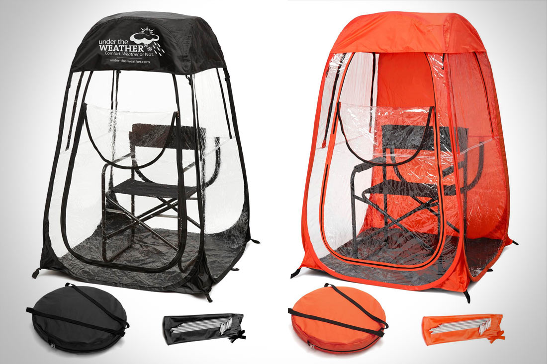 В отличие от обычных тентов, которые растягиваются над очагом и служат укрытием небольшой компании, OriginalPod создан для одного человека. По сути, это небольшая палатка-шатер с прозрачными стенками. Внутри поместится стул или кресло для комфортного времяпровождения во время дождя.