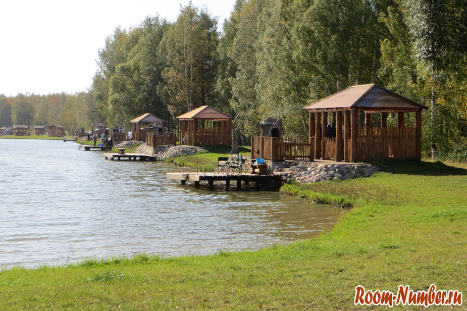Это чревато, выловом мелочи, но здесь действует принцип, поймал-отпусти. Часто попадаются и трофейная рыба. Вот здесь и оживает рыбацкая душа. Впрыск, в кровь адреналина, дрожащие руки и счастливая улыбка, когда рыба в садке, или отпущена после фото на память. По берегам, большого озера, расположены, места для ловли рыбы, место отдыха. Каждое, рассчитано на размещение более 10 человек. Стены отделаны камнем и деревом. Здесь же располагается главное украшение, мангал — камин, для создания атмосферы уюта, приготовления сочных и вкусных шашлыков. Стоянка для автомобиля, находится, возле каждого такого места.