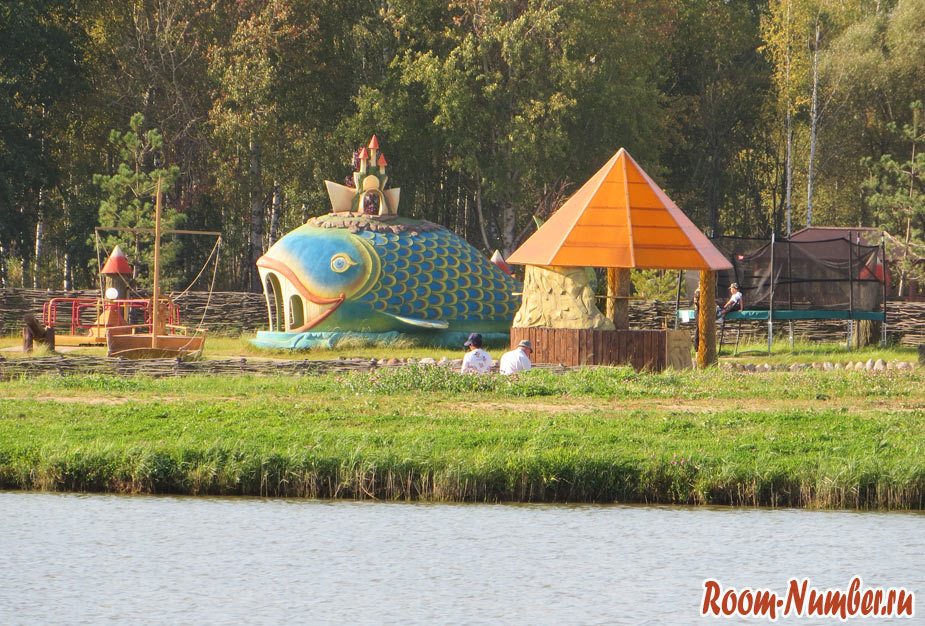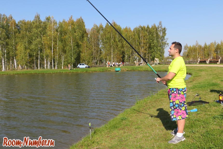 Мы захотели поймать щуку, она водится в главном пруду. Оформив путёвку, нам объяснили, где можно будет ловить. Если не бронировали «бунгало», то рыбачить можно будет где угодно на левом берегу. Подъехать к месту рыбалки можно прямо на машине. Въезд и парковка входят в стоимость путевки. Кстати, в главном здании можно приобрести также всё необходимое для рыбалки. У нас всё было своё, кроме наживки.