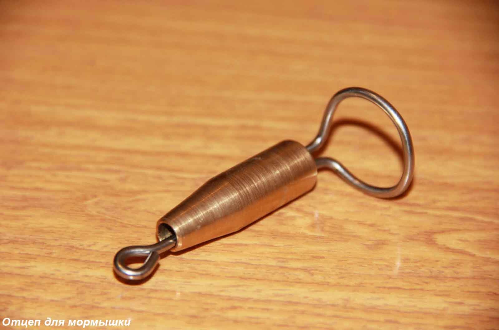 Важное условие: приспособление для мормышек, воблеров и блёсен не должно быть тяжёлым, чтобы оно могло легко отцеплять тонкую нить и не нанести ей вреда. Зимний отцеп изготавливают различной конфигурации: