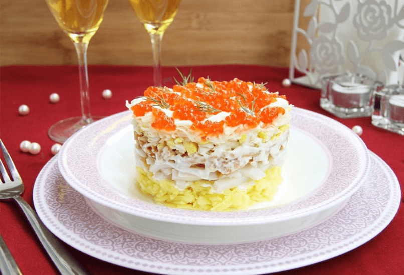 Салат мимоза с печенью трески