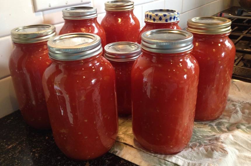 - Помидоры на считанные секунды погружаются в кипяток. После этого с них очень легко снимается кожица. Затем они измельчаются с помощью стандартной мясорубки.