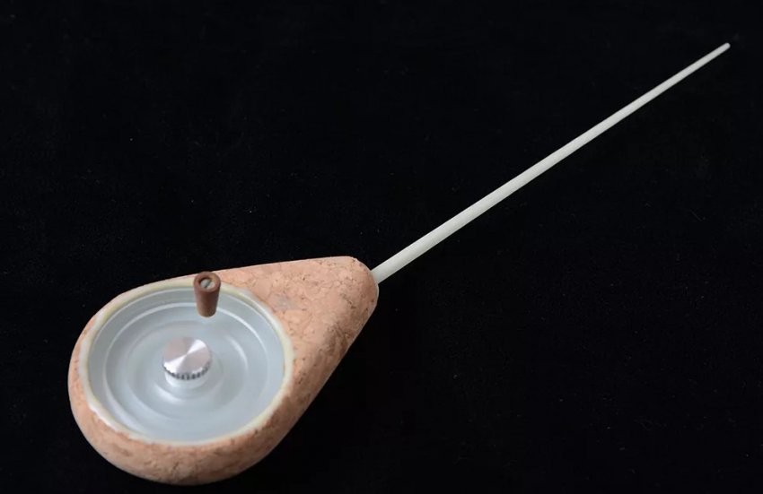 - Вырежьте ручку удилища из пенопласта или винной пробки. Нужно придать форму юбочки, сняв фаску на одной из сторон.
