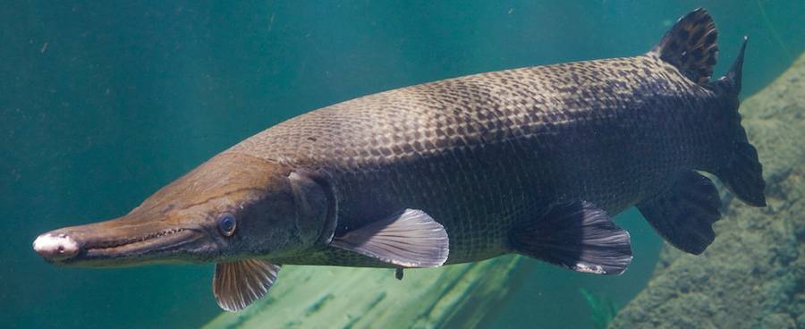 Самая большая пресноводная рыба – это арапаима. Она вырастает до 2 метров в длину, но существует легенда, в которой рыбаку посчастливилось поймать арапаиму длиной 4,5 метра. Чешуя у этой рыбы крупная, на голове располагаются крупные пластины. Интересно, что чешуя прочнее кости во много раз. Главная особенность этого представителя водной стихии в том, что дышит она обычным воздухом, как млекопитающие, вдох она делает так громко, что его можно услышать издалека.