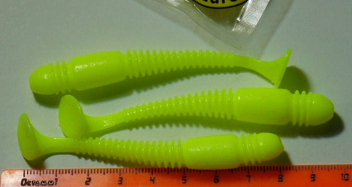Цвета подбирались разнообразные и, на наш взгляд, вполне ходовые. По три цвета на каждый тип приманки. В итоге рыболовы получили на тест по 9 пачек классной резины.