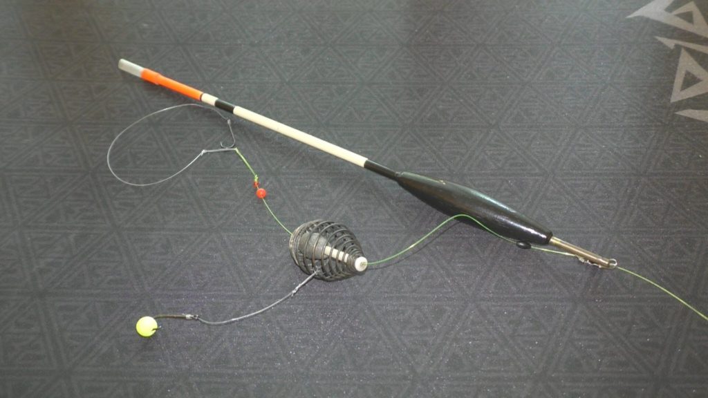 Иногда используют комбинированный монтаж и на поплавочную снасть цепляют кормушку: