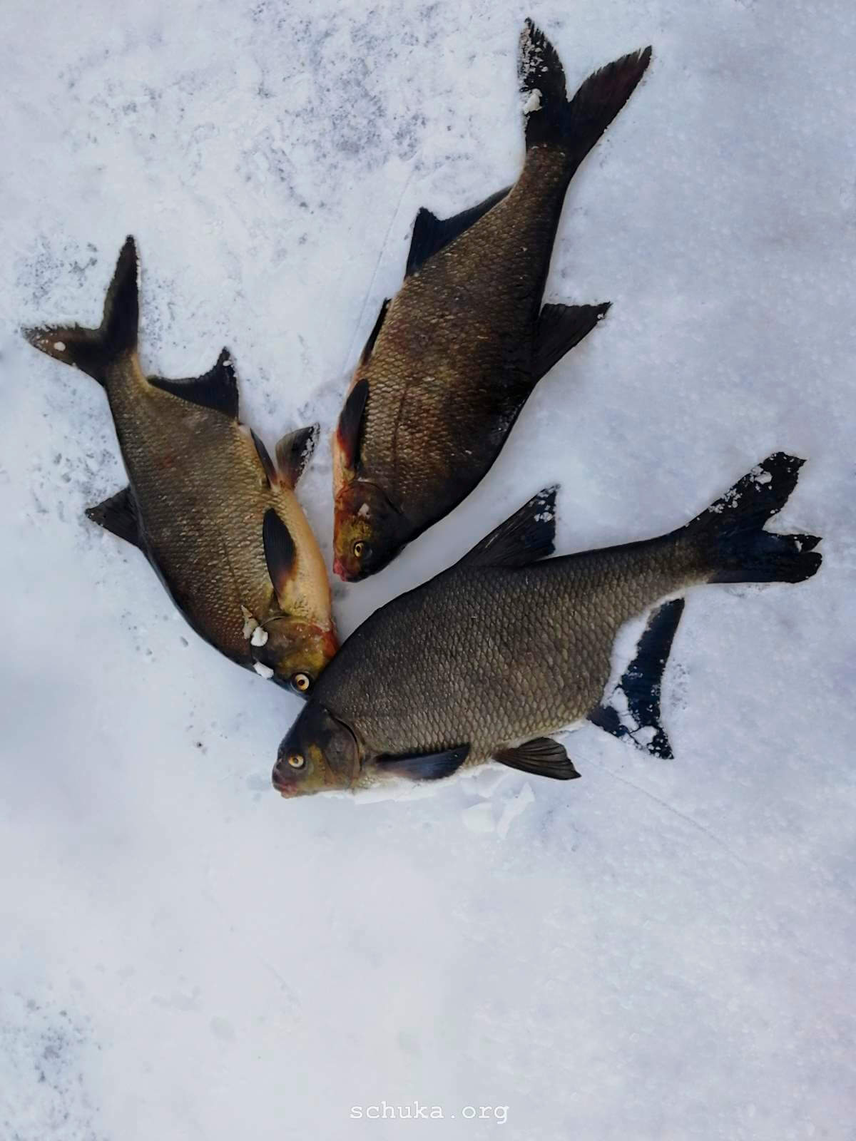 Зимой леща обычно ловят на 5-7 мотылей или на пучок небольших червей навозников. Очень неплохой результат приносят бутерброды: мотыль вкупе с репейником, несколько червей плюс парочка опарышей, личинка короеда плюс красная пиявка. Дабы избежать холостых хваток, когда активны небольшие ерши и густерки, используются более объемные приманки на более крупных крючках. Ловля зимой на донки естественно требует постоянного наблюдения за снастями, оперативного реагирования на поклевки, регулярного обновления прикормки.