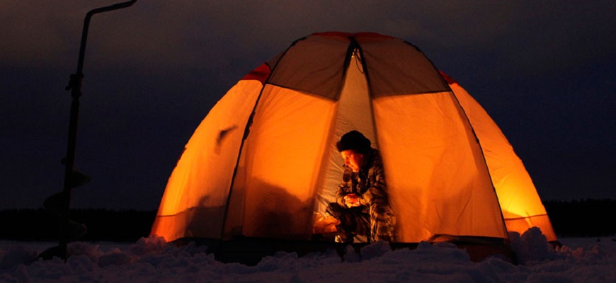 - Палатка и обогреватель для нее. Обычная свеча, зажженная в палатке, даст дополнительное тепло. Она защитит от снега, ветра и мороза.