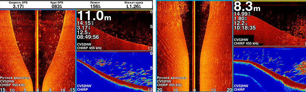 Преимущество будет у тех рыбаков, которые настроили прибор таким образом, что в глиссирующем режиме он сможет показывать скопление рыбы. Так ваши поиски будут куда плодотворней и займут меньше времени.