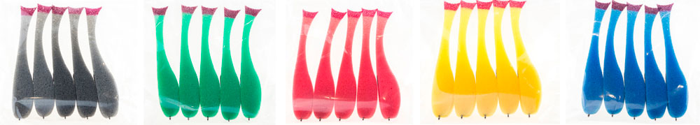 Основное отличие – нет активной игры и вертикальная проводка на дне благодаря положительной плавучести, имеют хорошие свойства незацепляйки. Возможен хороший клев на поролонки, если нет атак на силиконовые оснастки. Размер 6-12 см.