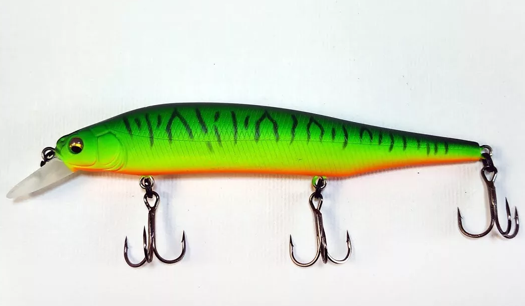 Воблер BearKing Ito Shiner имеет удлиненный корпус и фирменные тройники. Хитрость этого воблера — его предельно резкая, мучительная игра змейки при резком твиче на горизонте до двух метров. Также отлично ведет себя при забросах в водоемах с разным типом течения, как в проточной, так и в стоячей воде. Благодаря хорошо сконструированой системе баланса и дальним забросам этот воблер незаменим при ловле активных, мощных хищников. В корпусе воблера BearKing Ito Shiner есть специальный канал, позволяющий системе металлических шариков перемещаться по нему во время заброса. При подключении они переходят в среднее положение, что придает этой модели хаотичную резкую игру, чередующуюся с вращением и осевыми колебаниями. Самый крупный хищник наших водоемов — щука, отлично ловимая на приманки BearKing Ito Shiner, но размеры трофеев впечатляют: в основном рыба среднего или крупного размера. Даже окуни любят эту чудесную приманку. Воблер также отлично подходит в качестве «разведчика» в пресных водах, если искать места скопления хищных рыб. В ящиках спиннинговых рыболовов в Америке, Европе, а теперь и в СНГ эта приманка присутствует в различных цветах. Сама по себе цветовая гамма модели очень впечатляет: от натуральных цветов до традиционных кислых. Рыбалка на воблер BearKing Ito Shiner возможна как с лодки, так и с берега. Эту приманку желательно использовать на поводке из стали или титана длиной от 15 см.