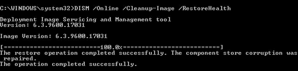 - При повторном появлении ошибки снова открыть КС, набрать: «DISM / Online / Cleanup-Image / RestoreHealth».