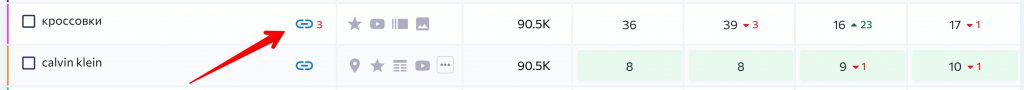 Также вы сразу заметите, если URL-адреса в выдаче постоянно меняются — рядом с иконкой URL появится цифра с количеством страниц, которые конкурируют за место в выдаче. По клику на иконку вы увидите все адреса конкурирующих страниц и их title.
