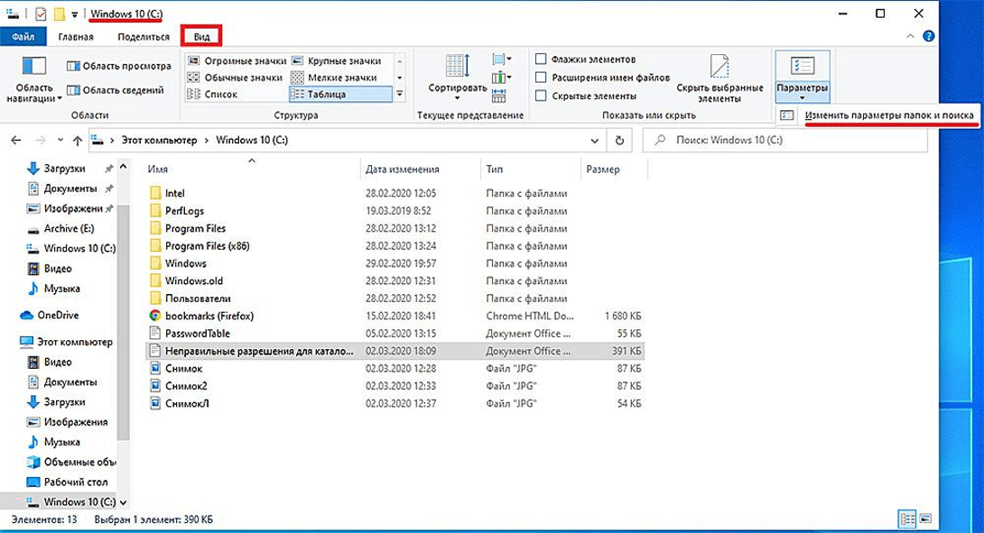 Сначала необходимо удостовериться, что профиль обладает правами доступа к этому объекту. При отсутствии разрешения доступа к системному файлу пользователю понадобится изменить способ отображения элементов в следующем порядке: