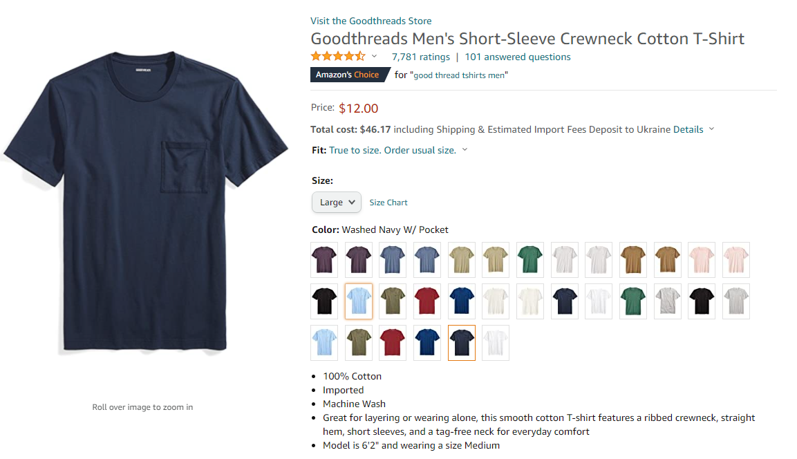 Я приверженец практики, когда для практически одинаковых товаров — например, футболок разных цветов — используют одну и ту же карточку товара, а нужный вам вариант можно выбрать при заказе. Таким образом минимизируется число дублей — карточек товара с одинаковым продуктом, а пользователь всегда попадает именно на тот товар, который он ищет. Такое решение также позволяет сэкономить краулинговый бюджет и избежать каннибализации.