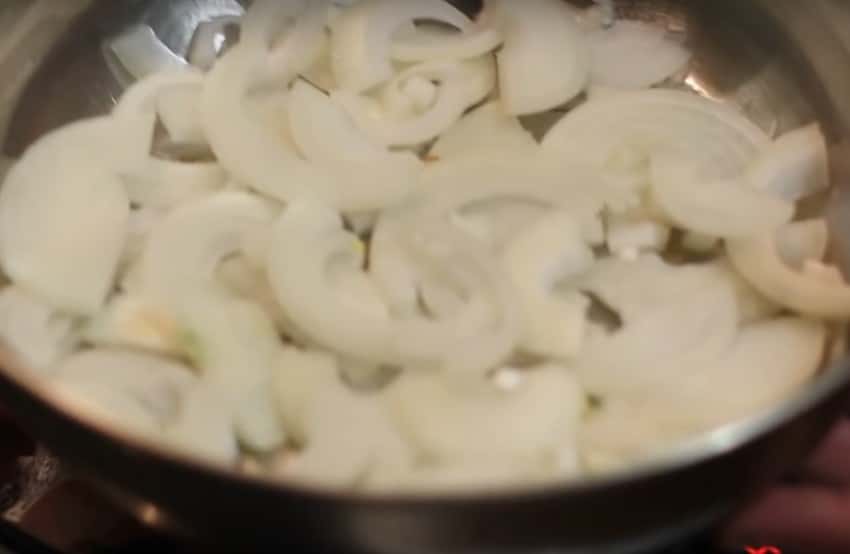 - Порежьте луковицы полукольцами, отправьте к рыбе.
