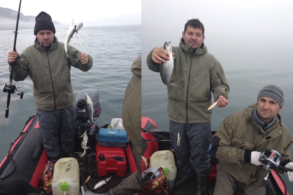 Но зато рыбалка что надо. Мы вышли на глубину, где хорошо себя чувствуют не только субмарины, но и косяки рыбы. Без усилий на одну уточку, можно легко поймать до 50 кг трески. Нам попадались средние особи по 0,6 кг и крупные 1,5-2 кг.