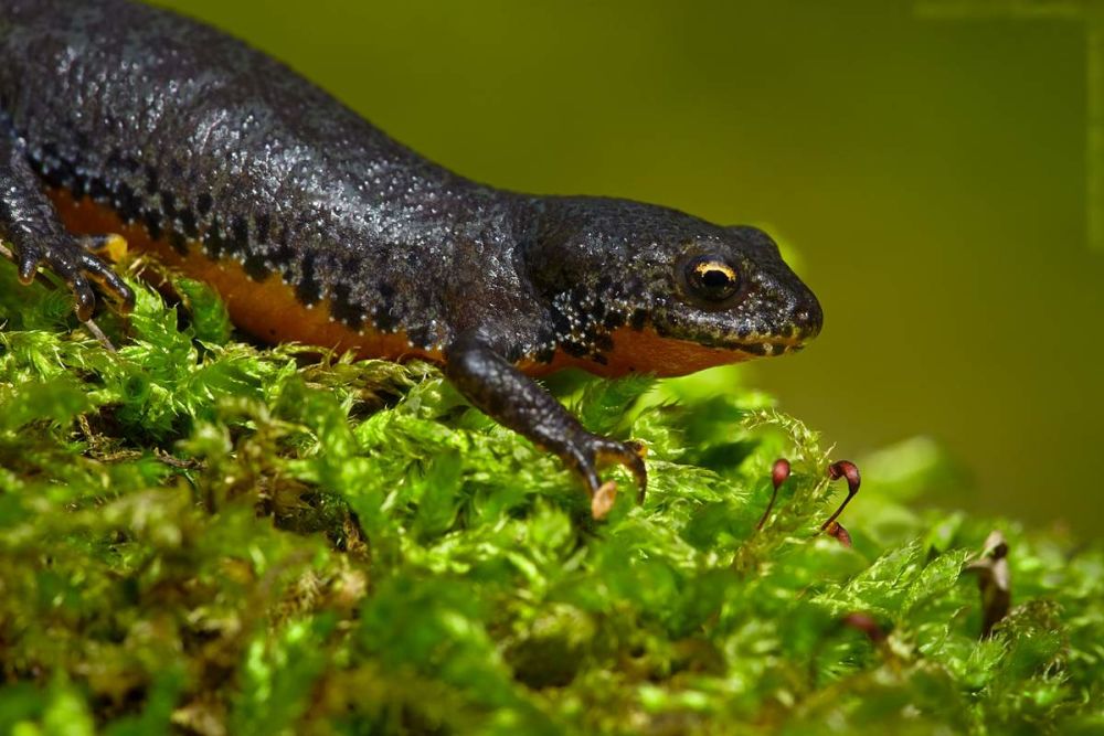 Это самый маленький из тритонов, которого еще называют карликовым, но размер не помешал ему получить широкое распространение. Особи имеют весьма экстравагантную окраску брюшка – оно ярко-оранжевого или киноварно-красного цвета, покрыто темными пятнышками. Еще одна видовая особенность – хвост, закругленный на конце.
