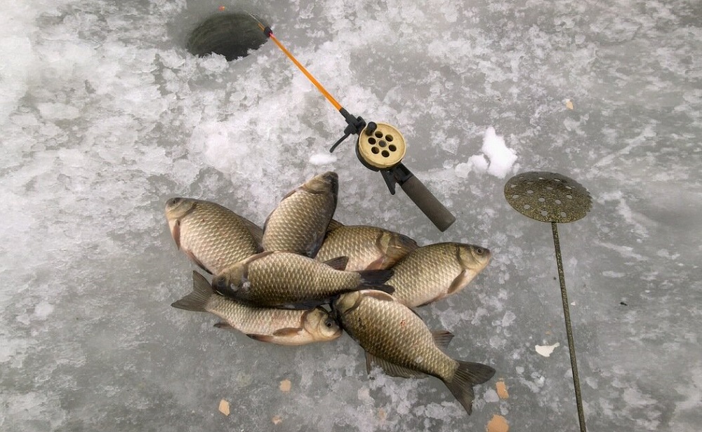 Считается, что поймать карася со льда нельзя. Но если вы наловчитесь ловить со льда, сможете ловить хорошую рыбу. Ловля карася со льда на поплавок — это настоящее творчество и ,конечно же, это возможно. Карась зимой лучше клюет рано утром — в 6 и в 8 утра, и в полдень. Нужно знать также и то, что зимой карась ловится на более крупные наживки, чем летом. Это может быть мотыль, червяк, опарыш или тесто.